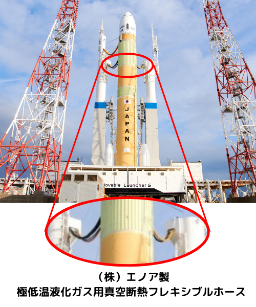 エノアの真空断熱フレキシブルホースは、液体水素や液体酸素の安全でロスのない移送をサポートしています。