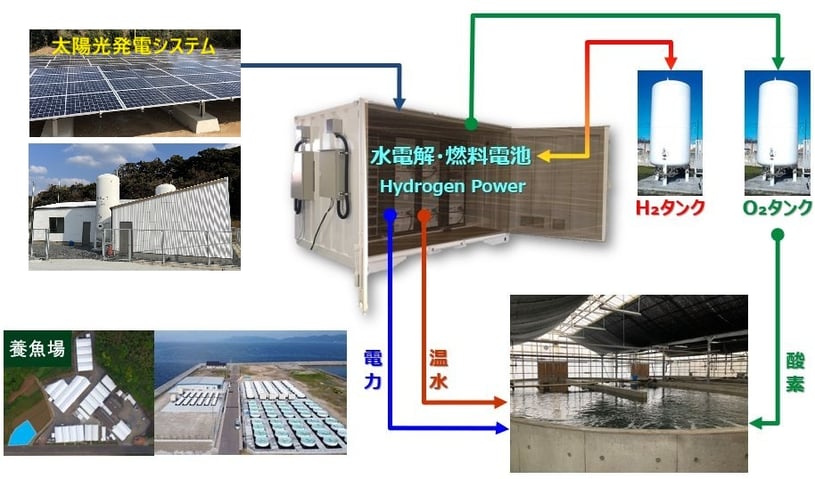 陸上養魚場の一部を再エネ水素蓄電システムで自立運転とBCP対応